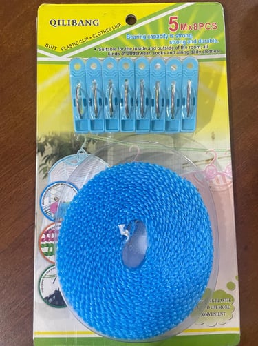 LAZO DE PLASTICO AZUL CON PINZAS